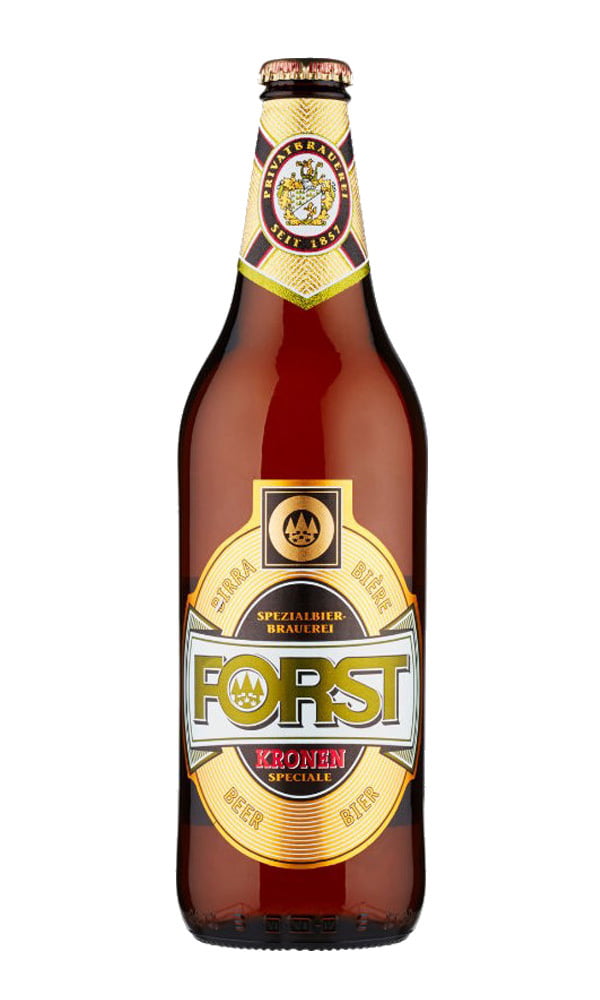 La Forst Kronen 0,66L è una lager premium italiana dal gusto raffinato, prodotta in Alto Adige dal celebre birrificio Forst. Di colore biondo brillante, ha una schiuma fine e persistente e un bouquet aromatico delicato, con note floreali e cereali leggeri.